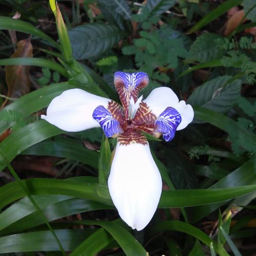 L'Iris Marcheur est une plante vivace de la famille des Iridacées, originaire d'Amérique Centrale, utilisée en plante à massif. ou en bordure. D'une hauteur de 30 à 40 cm, produit des fleurs blanches teintées de jaune et de mauve. Il se propage grace à des stolons qui s'enracinent au contact du sol et forment de nouveaux plants