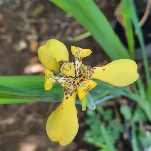 L'Iris Marcheur Jaune est une plante vivace de la famille des Iridacées, originaire des Antilles et d'Amérique du Sud, utilisée en plante à massif. ou en bordure. D'une hauteur de 30 à 40 cm, il produit des fleurs jaune et des stolons qui favorisent sa propagation